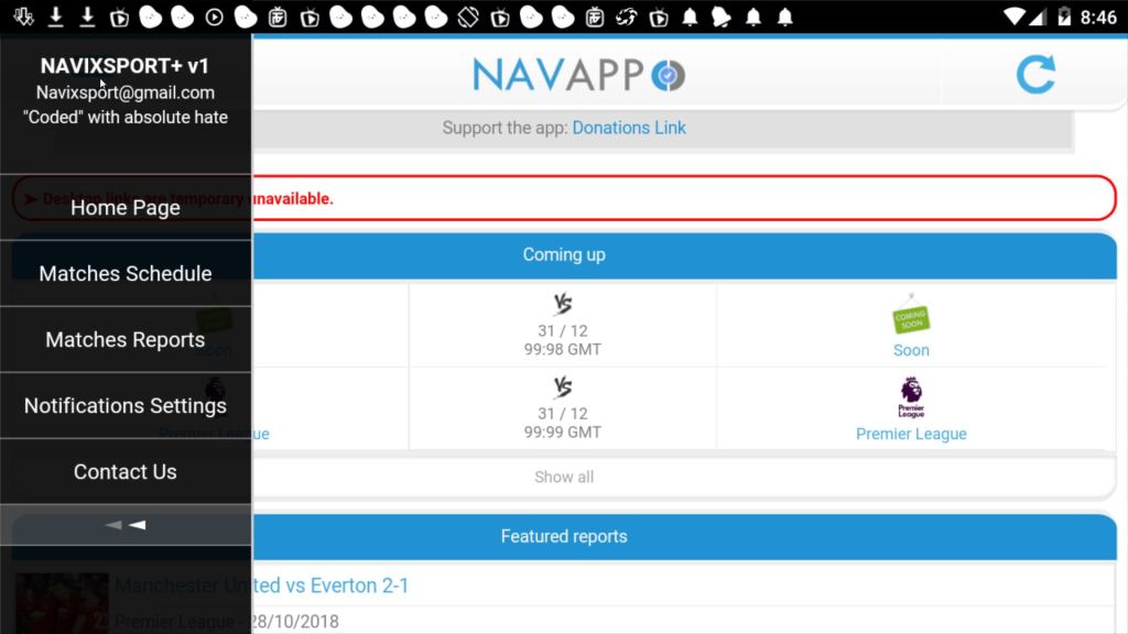 NavixSport allows users to add playlists based on their preferred sports content, with a demo playlist tailored for soccer fans. The app also offers news, events, stats, and transfer updates for your favorite teams.